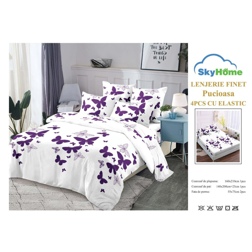 - cearceaf pentru pat: 140cm x 200cm + 25cm (coboara pe langa saltea)